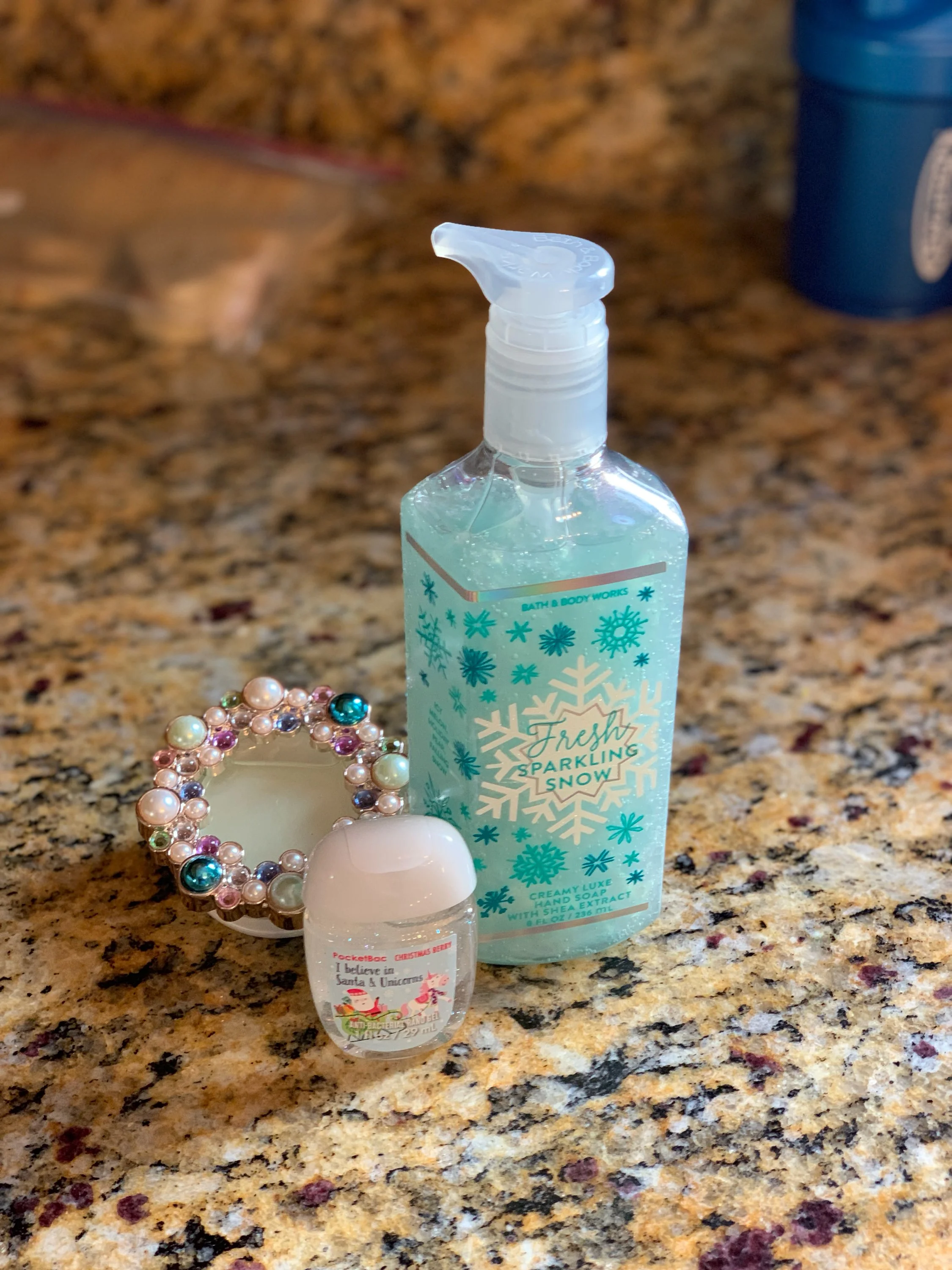 Pictured below are the presents (Yeti hot/cold mug, Smart Wifi plug, kitchen gadgets with soap & flavored olive oil, yoga mat with 2 free classes, 4 piece stemless champagne glasses with 2 mini bottles of Asti, peppermint hot cocoa with an Ohio necklace, leather earrings, Bath & Body hand soap, hand sanitizer, and car plug in). Most of us brought the same two presents, but you could definitely bring two different gifts. Next time, I will wrap my presents differently to add a spin on the game. This way once one present is unwrapped, the other guests do not know which other present is yours.